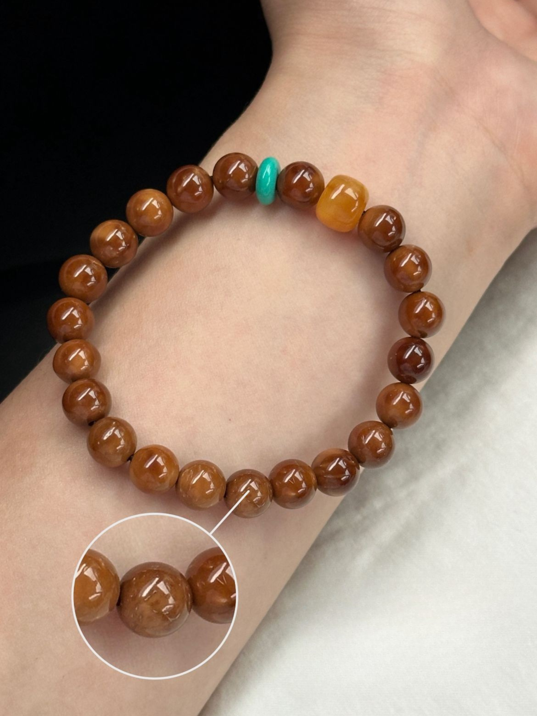 Adorn your wrist with the serene elegance of the Adalynn Turquoise Bead Bracelet. This captivating piece blends the natural beauty of vibrant turquoise with the warm glow of polished beeswax beads, creating a harmonious and sophisticated accessory. Designed for effortless styling, its versatile aesthetic makes it a perfect complement to any ensemble, from everyday chic to refined evening wear.