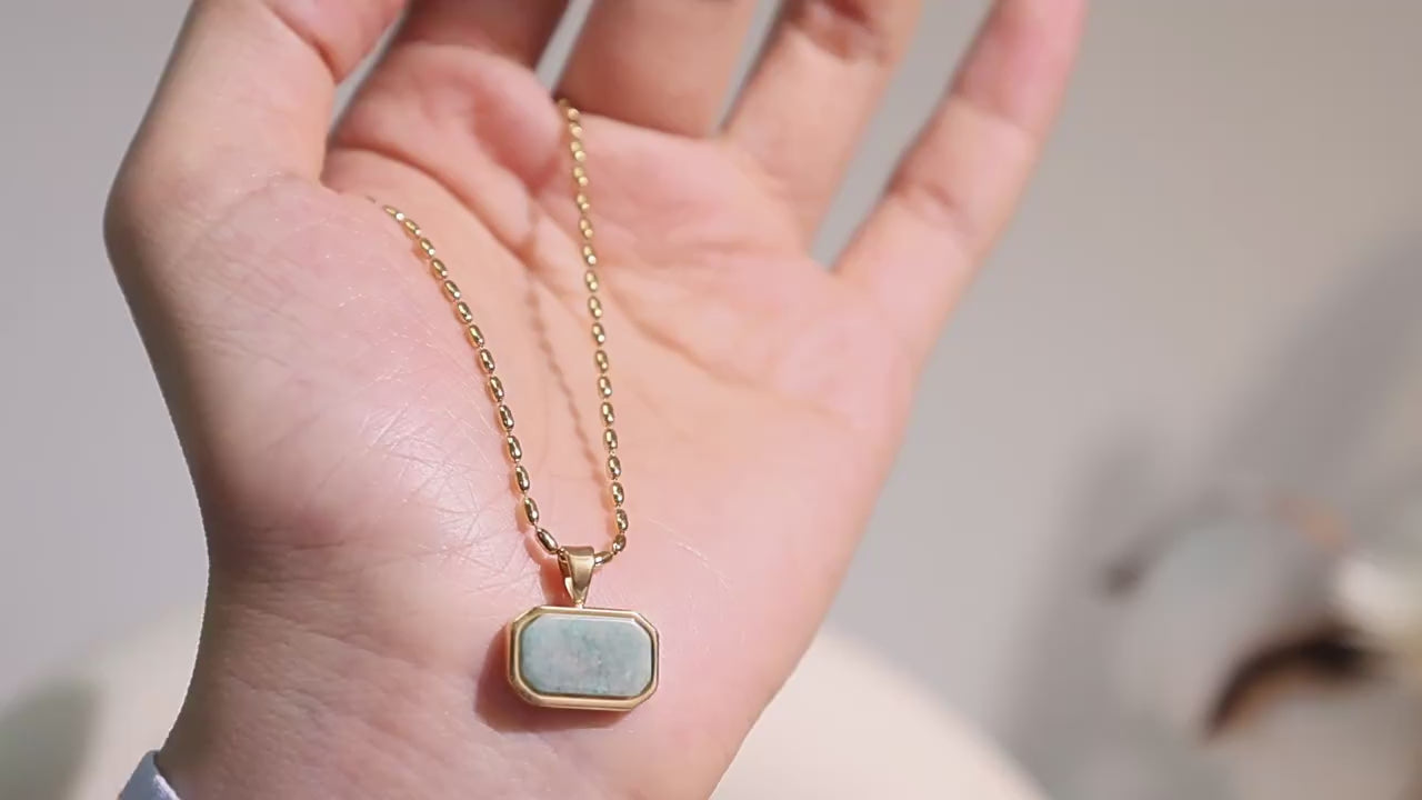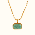 Elevate your everyday look with the Carlynn Square Amazonite Necklace, a timeless piece designed for the modern muse. Featuring exquisite square-cut green natural Amazonite stones meticulously set in a radiant gold-toned titanium steel chain, this necklace exudes sophisticated charm. Its elegant design effortlessly transitions from a chic daytime accessory to a refined evening statement, promising to be a versatile addition to your jewelry collection.