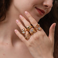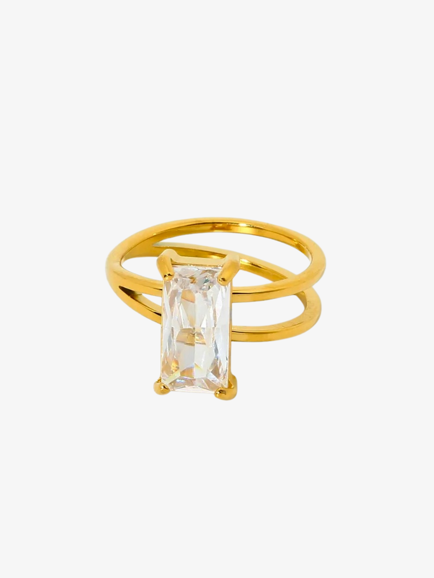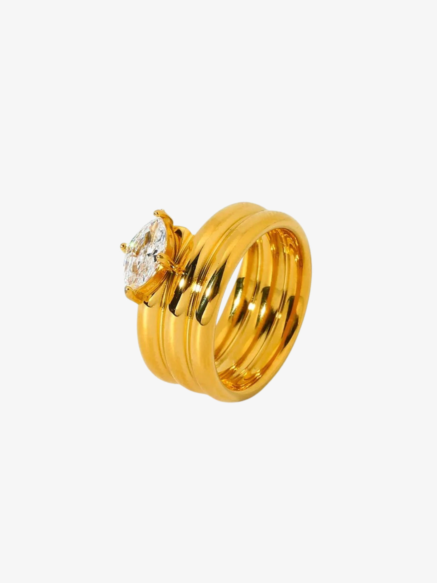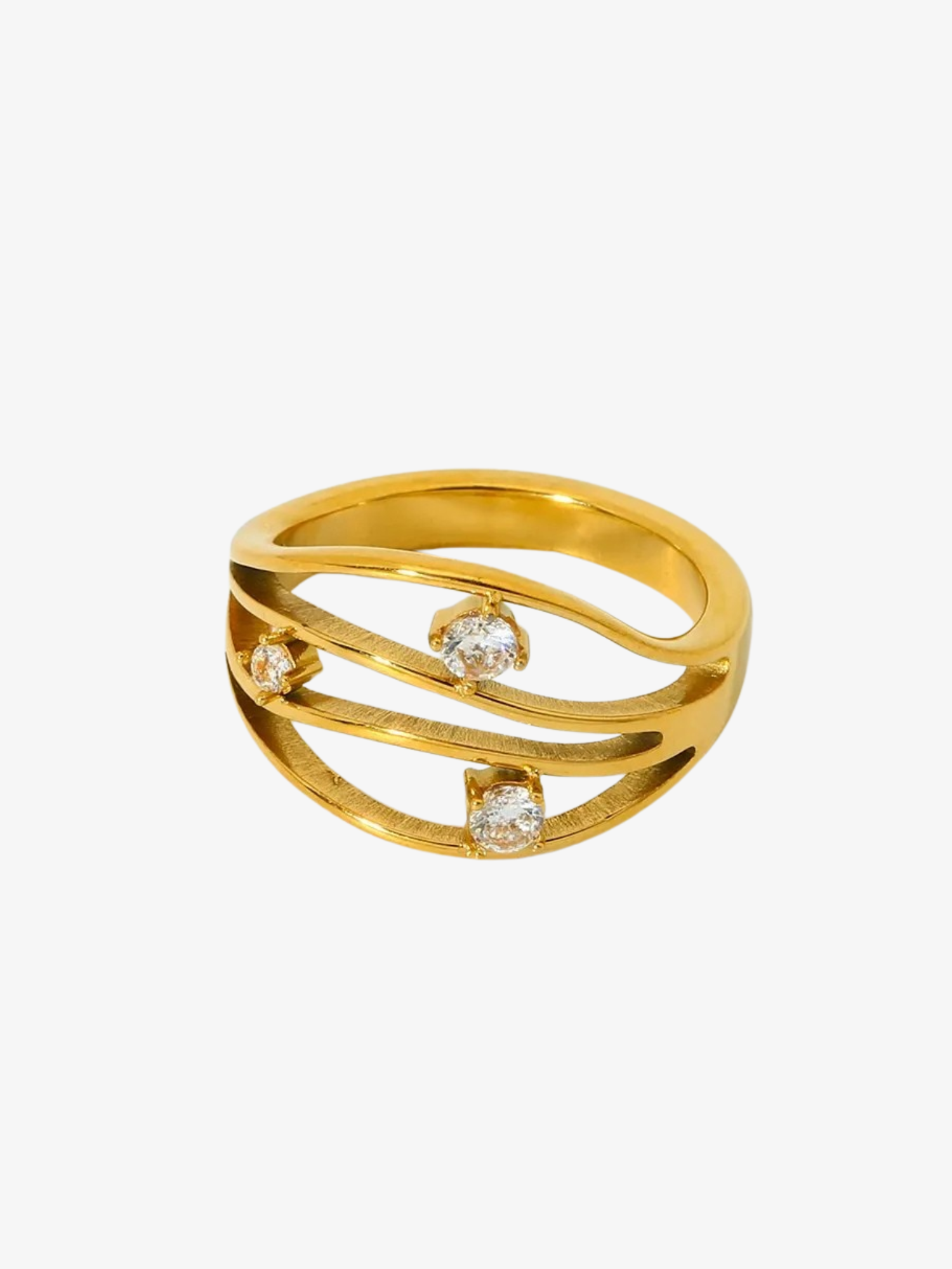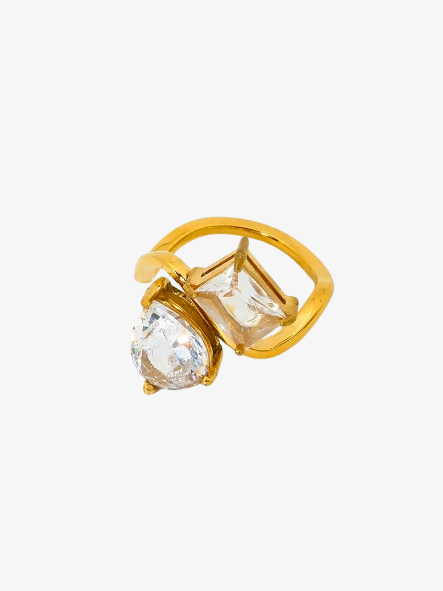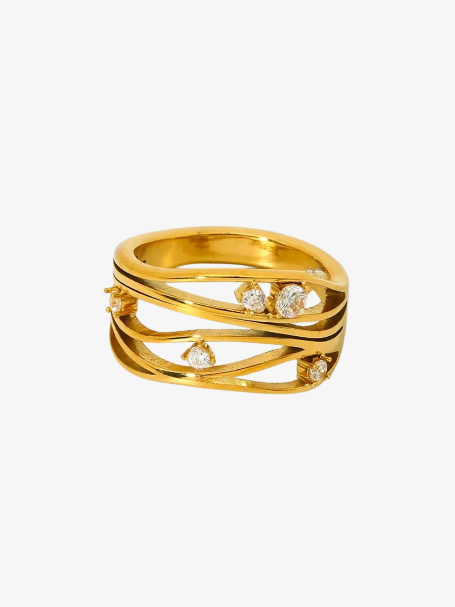 Embrace contemporary elegance with the Jaslynn Sparkling Geometric Ring, a captivating piece designed to elevate any ensemble. This exquisite gold-toned ring features a striking array of geometric and waterdrop shapes, meticulously inlaid with shimmering zircon stones that catch the light with every movement. Its modern aesthetic perfectly embodies the coveted 'Ins style,' making it an essential accessory for those who appreciate understated luxury.