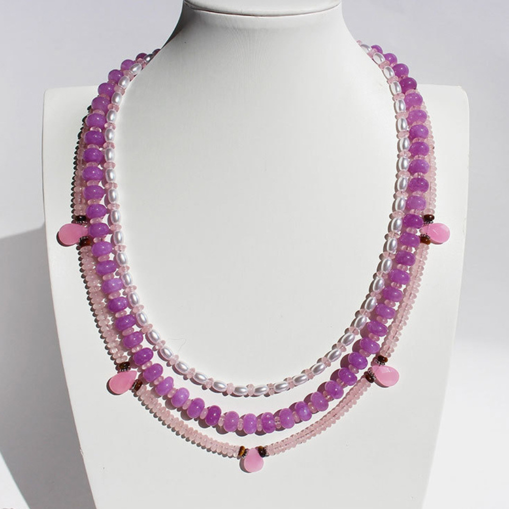 - Pearl Necklace: 48 + 6 cm, Purple & Pink Necklace: 50 + 6 cm