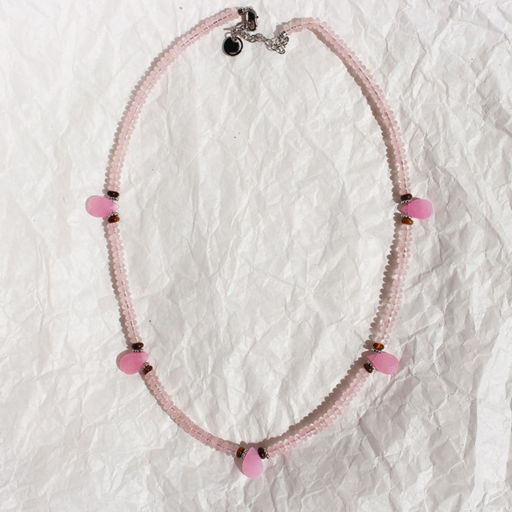 Adorn your neckline with the captivating Kaily Iridescent Drop Pearl Necklace, a piece designed to evoke subtle luxury and unique charm. This exquisite necklace features striking iridescent taro purple flat beads, beautifully interspersed with delicate rice pearls, creating a harmonious blend of textures. A gracefully suspended teardrop-shaped pink and purple stone pendant adds a focal point, reflecting light with every movement. Its clavicle length ensures it sits perfectly, enhancing your décolletage with an elegant touch.