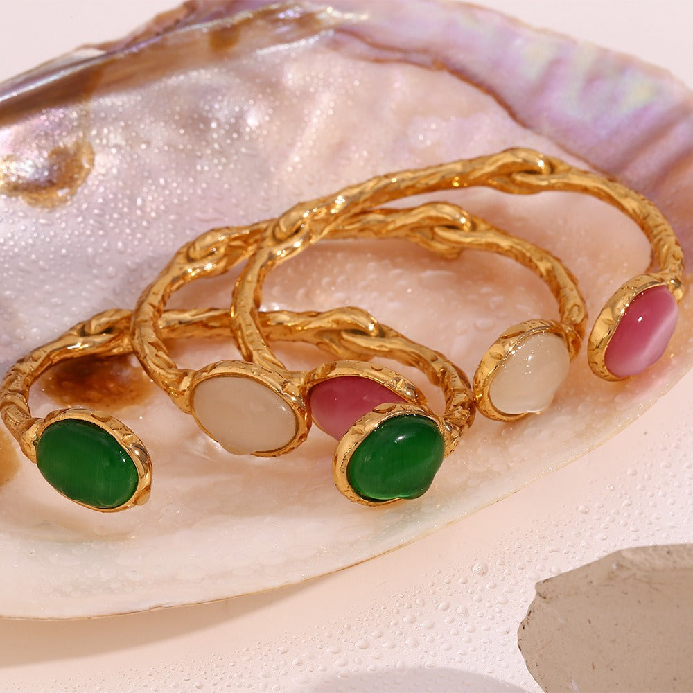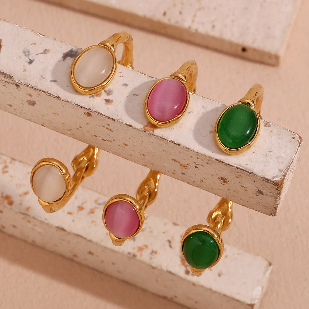 - Features two prominent oval opalite stones at each opening